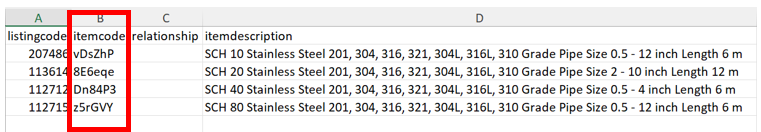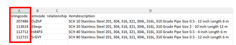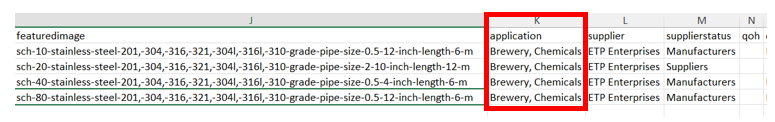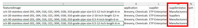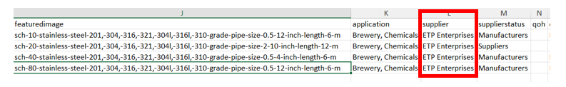 Example of how Supplier’s column will be input in Excel sheet