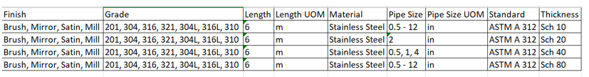 Example: Stainless Steel Pipe