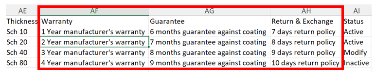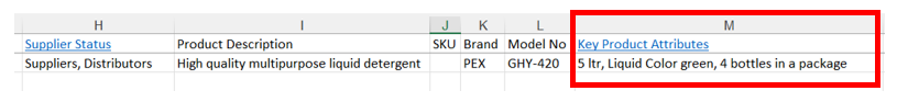 However, some attributes do not require a UOM column like color, standard, Grade etc. As the values for those attributes can be written under their own respective column.