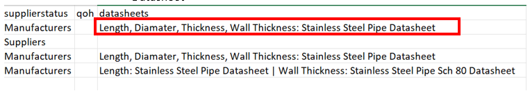 c. Multiple attributes that share the same datasheet are separated by coma.
